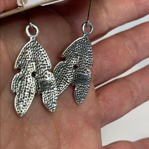 Stylish silver feather earrings by Justin Boots. Perfect for any occasion.