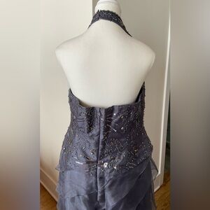 Bellissma Fashions Beaded Chiffon Evening Dress | Smoky Gray | Size 14