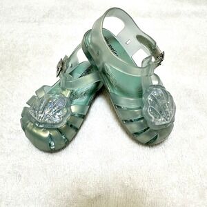 Mini Melissa Little Girls Sea Sandal Shell Glitter Blue Jelly Shoes Size 7