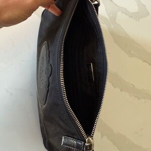 Selling Prada shoulder bag, originally purchased at Holt Renfrew. It features the original Prada logo. It is black nylon, with black leather piping, and silver tone hardware. Zip closure at top. Lightly used and in excellent condition.