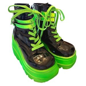 Demonia Shaker-52 UV Neon Green Platform Wedge Boots 9.75" Insole Alt Goth Rave