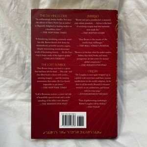 Hardcover edition of 'The Secret of Secrets' by Dan Brown. Rich red cover with gold lettering. Some marks, scratches, and wear to the exterior book jacket. Metallic gold lettering on the spine and cover. There is little wear or marks to the pages, see photos for condition. Interior map at the front and back of the book.
