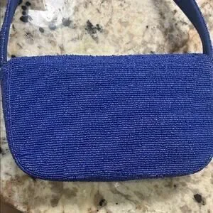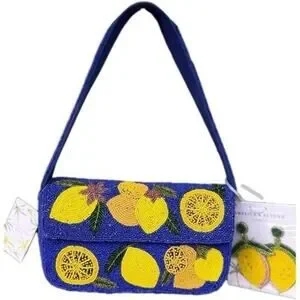Brighten your ensemble with this America & Beyond blue beaded clutch. Adorned with vibrant lemon designs, it's a stylish accessory for any occasion.