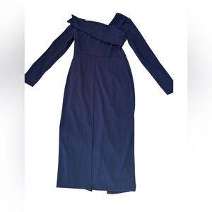 Chic one-shoulder design. Perfect for elegant occasions. Flattering navy color.