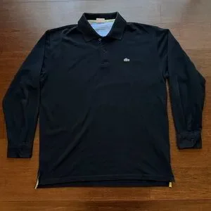 Lacoste Long Sleeve Polo Shirt Mens XL Size 7 Black Pique Classic Logo