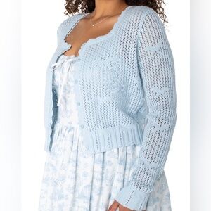 NWT Bridgerton women’s square neck cardigan by Celebrity Pink. Color is skyway. Size is L. See pictures for more detailed description and size information.