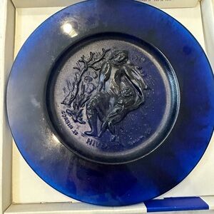 Set of four Daum Pâte de Verre plates in original packaging. Selling for more on eBay but honestly I’m not into selling on eBay and just giving them a good home where they will be enjoyed. Set of four for the seasons. Crystal and glass plates from Daum. Each plate is 10.5 in diameter. They were handmade in France in the 70s and the set is complete along with original cards and boxes. Features intricate designs. Colors include brown, green, purple and blue. One box has slight damage - shown in photo.