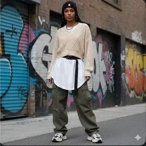 • Streetwear: As seen in the recent styling, it works well with cargo pants and oversized layers for a modern urban look.