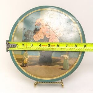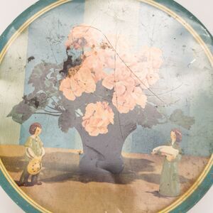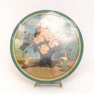 Vintage Boulevard Candy Co Tin Cottage Scene Floral Decor 9” Round Patina