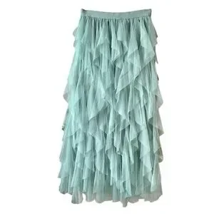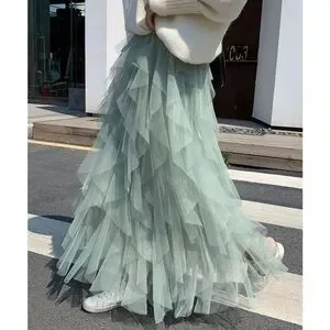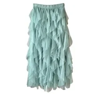 Soho Apparel Women’s Green Layered Flowy Flared Ruffle Boho Long Skirt Medium