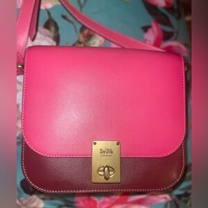 Coach Hutton Saddle Pink & Maroon Colorblock Leather Crossbody/Shoulder Bag