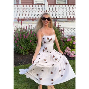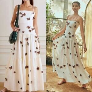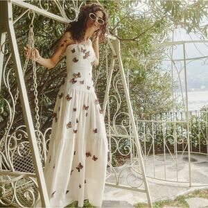 Agua By Agua Bendita Lima Embroidered Butterfly Linen Maxi Dress S