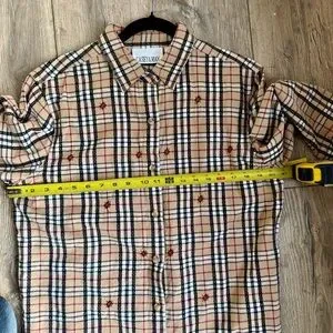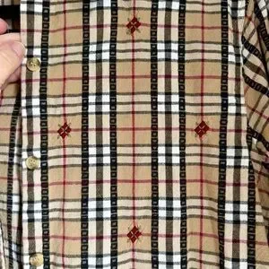 Classic plaid shirt by Casey & Max. Features a stylish beige and red pattern. Made from 100% cotton.