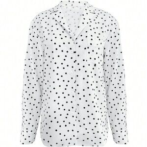 Black And White Elegan t Women's Polka Dot Shirt Blouse With Pocket details