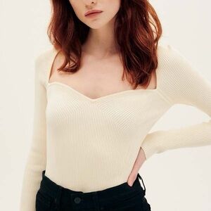 Crafted from SIMKHAI's signature compact rib, the Giuliana L/S Sweetheart Top offers a timeless silhouette with chic updates. Featuring a sweetheart neckline, long fitted sleeves, and a hip-length straight hem, this pullover top is sure to become a wardrobe favorite.