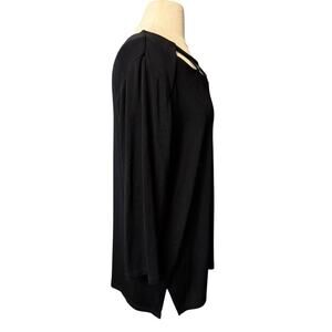 Chico's Travelers Size 3/ US Size XL/16-18 Black Cutout Top Blouse Slinky Shirt