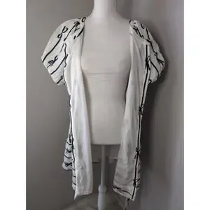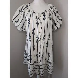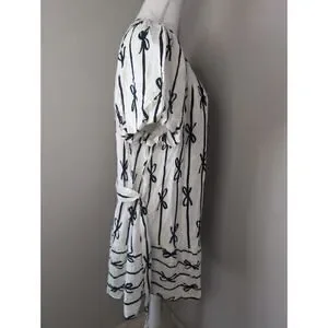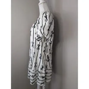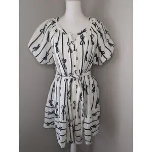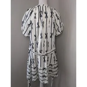 🧥 Umgee White & Navy Coquette Cottagecore bow balloon sleeve tie waist round neck dress