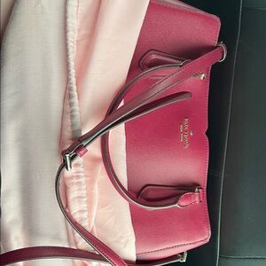 Stylish fuchsia leather satchel by Kate Spade. Features elegant design and durable handles.