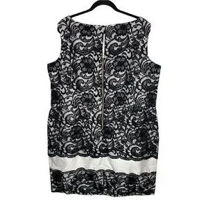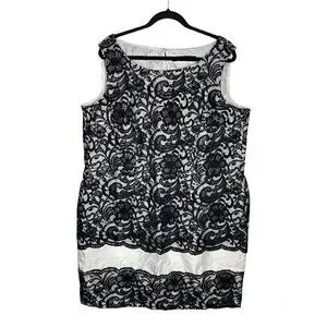 Eloquii Dress Size 22W NEW Floral Lace White Black Midi Women's Lace Over Dress