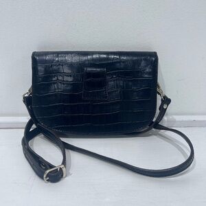 Elevate your style with this chic black croc-embossed crossbody bag. Perfect for any occasion, it combines elegance and functionality. In very good condition. No rips, holes, tears or stains. Please see photos for measurements and additional details
