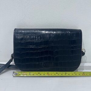 Neuville Black Croc Embossed Leather Crossbody Bag Adjustable Strap