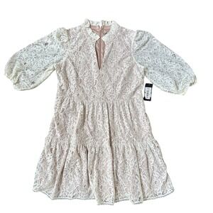 Jessica Howard Womens Cream Lace Lined A line Short Sleeve Dress Size 14 NWT