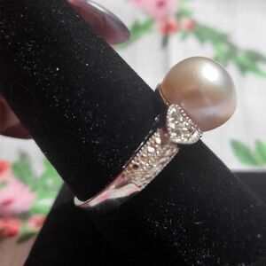 Cultured Freshwater Large Button Pearl with White Topaz Heart Sterling Silver Ring Sz 9