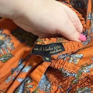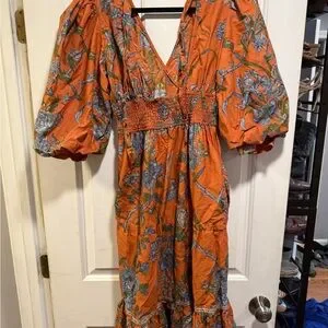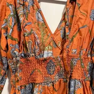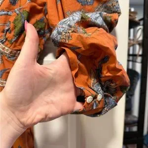 Step out in style with this elegant long sleeve floral dress. The vibrant orange hue is complemented by intricate floral patterns, making it a perfect choice for any occasion.
