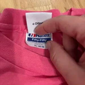 This vibrant pink Disney tee features a classic crew neck and short sleeves, perfect for casual wear. Made from soft cotton, it offers comfort and style for any Disney fan. The subtle design on the front adds a touch of charm to this must-have top.