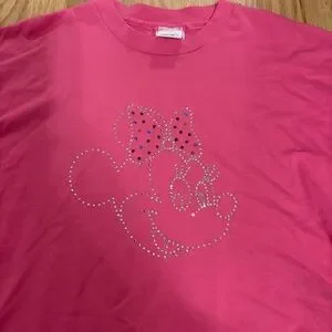 Vintage Disney Embellished Rhinestone Minnie Mouse Pink Short Sleeve T-shirt XL