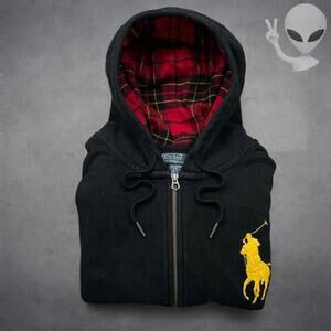 This is an authentic Polo Ralph Lauren hoodie in very good condition with no visible flaws. It features a soft cotton-polyester blend fabric with a comfortable fit. The hoodie includes a full double zipper and a plaid lined hood for added style and warmth. Please refer to the measurements to ensure the best fit for you.