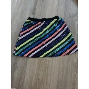 New with tags Rockets of Awesome girls stretchy black mini skirt with colorful diagonal sequin stripes size 6