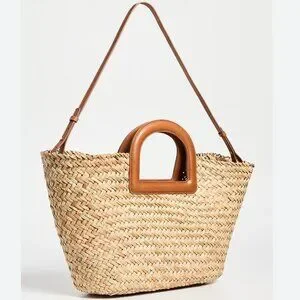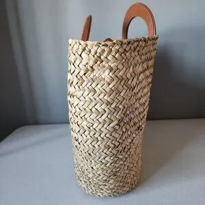 "LIKE NEW" Fantastic Spacious Handwoven Straw & Leather Tote By Madewell. Adjustable & Removable Leather Shoulder Strap, Push Pin Closure, Logo/ Branding on Cut Out Leather Handles, Unlined Open Weave, Sea Grass Straw,