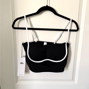ALO Yoga Black Crop Top with White Trim
