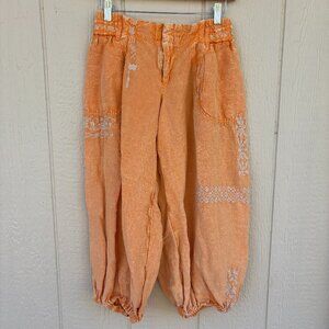Anthropologie Parachute Pants Women's XS Orange Boho Hippie Embroidered Linen