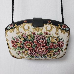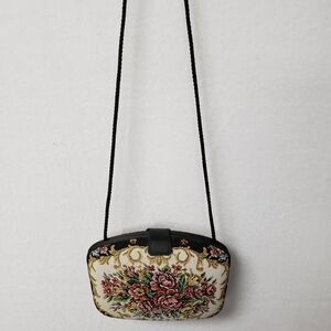 Vintage Tapastry Womens Floral Clutch Purse Handbag Gold Chain Handle 7x4.5x2.5