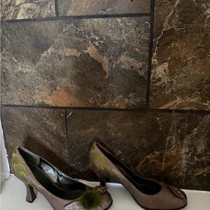 Nine West Brown Pumps with Green Accents. Super duper cute.