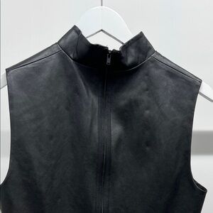 Chic black cropped zip up vest. Sleeveless design. High neckline. Perfect for layering.