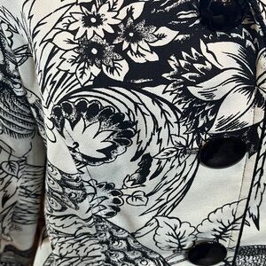 Vintage blazer Mischa size Medium. Elegant women's jacket featuring a striking black and white design. Perfect for adding a touch of sophistication to any outfit. Birds and flowers.