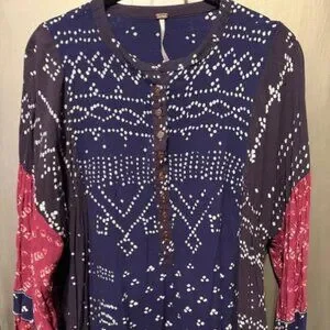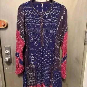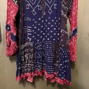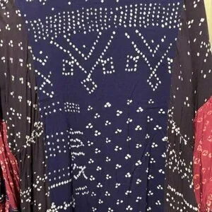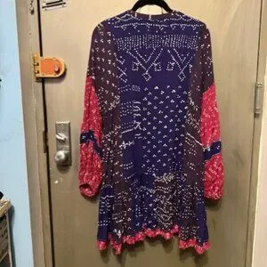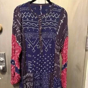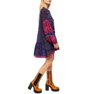 Free People Shibori Swing / Baby Doll Mini Dress with Balloon (Puff) Sleeves