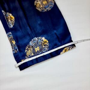 Silk Pants Women's XL Navy Blue Golden Dragon Print 100% Silk Luxury Loungewear