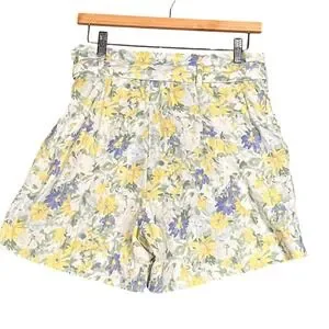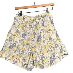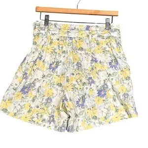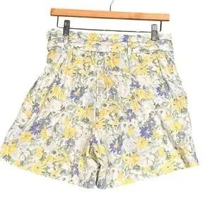 Abercrombie & Fitch Belted Floral High Rise Linen Blend Shorts Womens Med Yellow