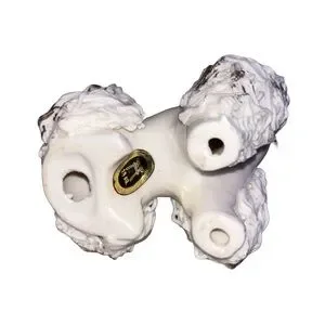 Vintage 50's White Spaghetti Poodle Dog Figurine Gold Trim Pink Rose 5”H