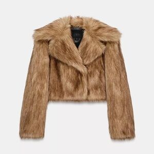 ZW COLLECTION FAUX FUR CROPPED JACKET LARGE BROWN BEIGE COAT 3945/243 TAN