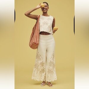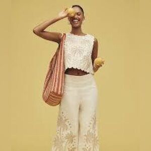 This Farm Rio x Anthropologie tank top is crafted from 100% cotton. It features eyelet detailing, open back, and a cropped fit.