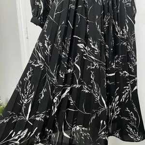 Elevate your wardrobe with this stylish black and white floral midi dress from H&M. The dress has a flattering fit and flare silhouette and features pleated accents, a V-neckline, and 3/4 sleeves with tie cuffs. It's perfect for various occasions from party/cocktail, casual to business meetings.