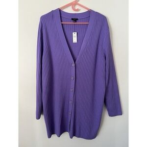 Purple vneck cardigan with vertical ribbing. Brand new! 2x