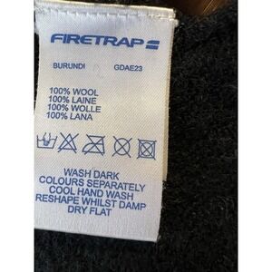 Firetrap Y2K 100% Wool Zip Full Zip Sweater Womens M Distressed Knit Grunge Goth