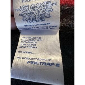 Crafted from 100% wool, this sweater has a strong alternative, punk, and avant-garde aesthetic. The distressing, raw edges, and visible knit variations are intentional design elements typical of Firetrap's early 2000s styles.