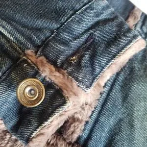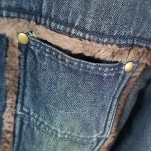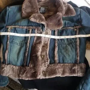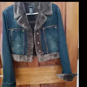 Late 90's Bebe denim jacket brown faux fur trim,rare!”